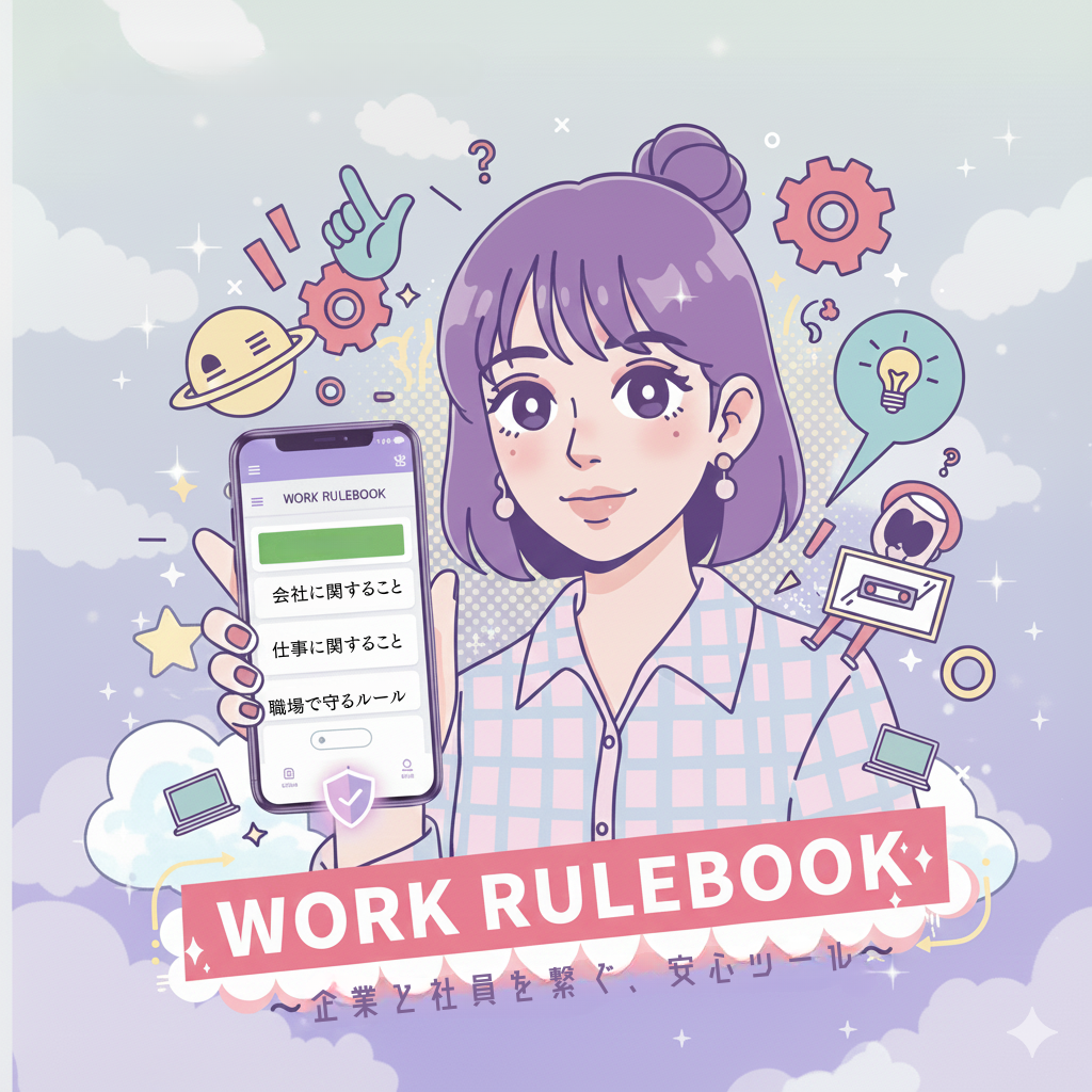 などワークルールブックアプリにまとめることで企業と社員の安心を繋ぎます。