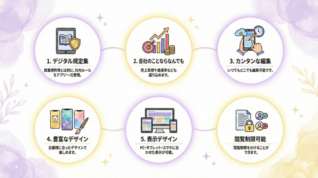 「社員がルールブックを見ない」という悩みを解消し、『社員の安心』と『企業の安定』を実現します。