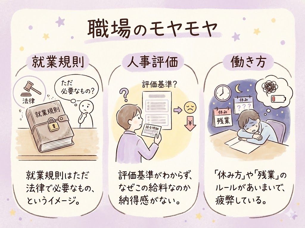 会社をひとつの「チーム」と例えるなら、就業規則は「法律にのっとったルールブック」、人事制度は「スコアボード」、ワークルールブックアプリは「社内ルール」です。しかし、多くの会社でこんな悩みはありませんか?