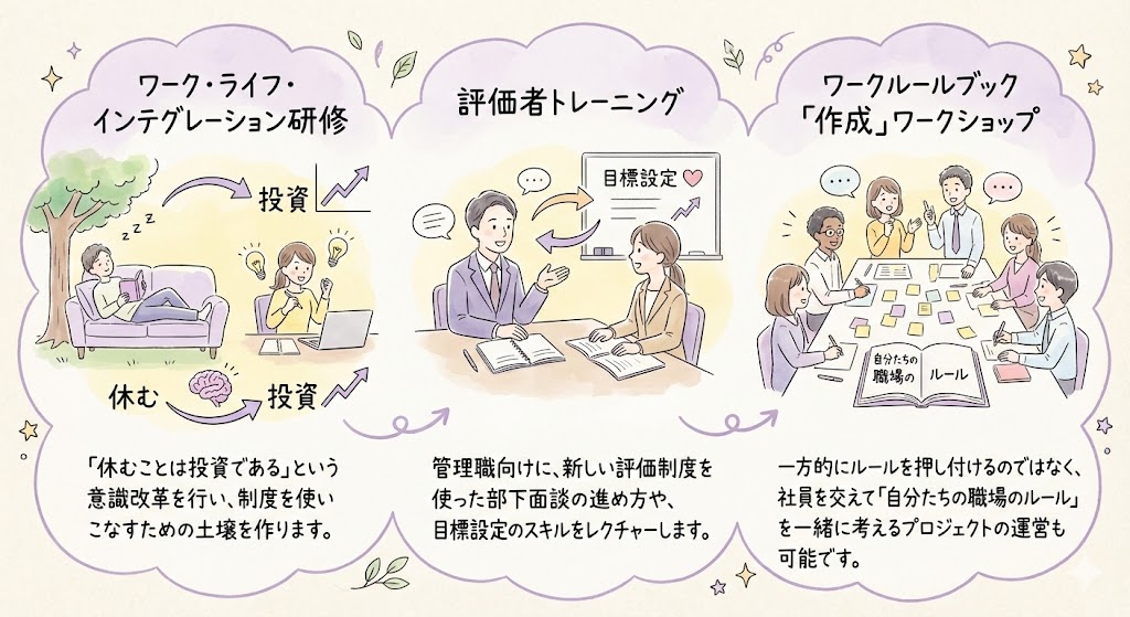 制度を作るだけでなく、それが「文化」として定着するまで伴走します。