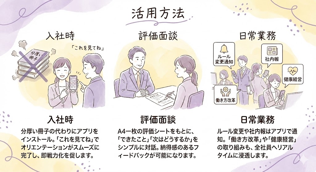 スマホで持ち歩く「会社のルール」と、成長を支える「人事評価制度