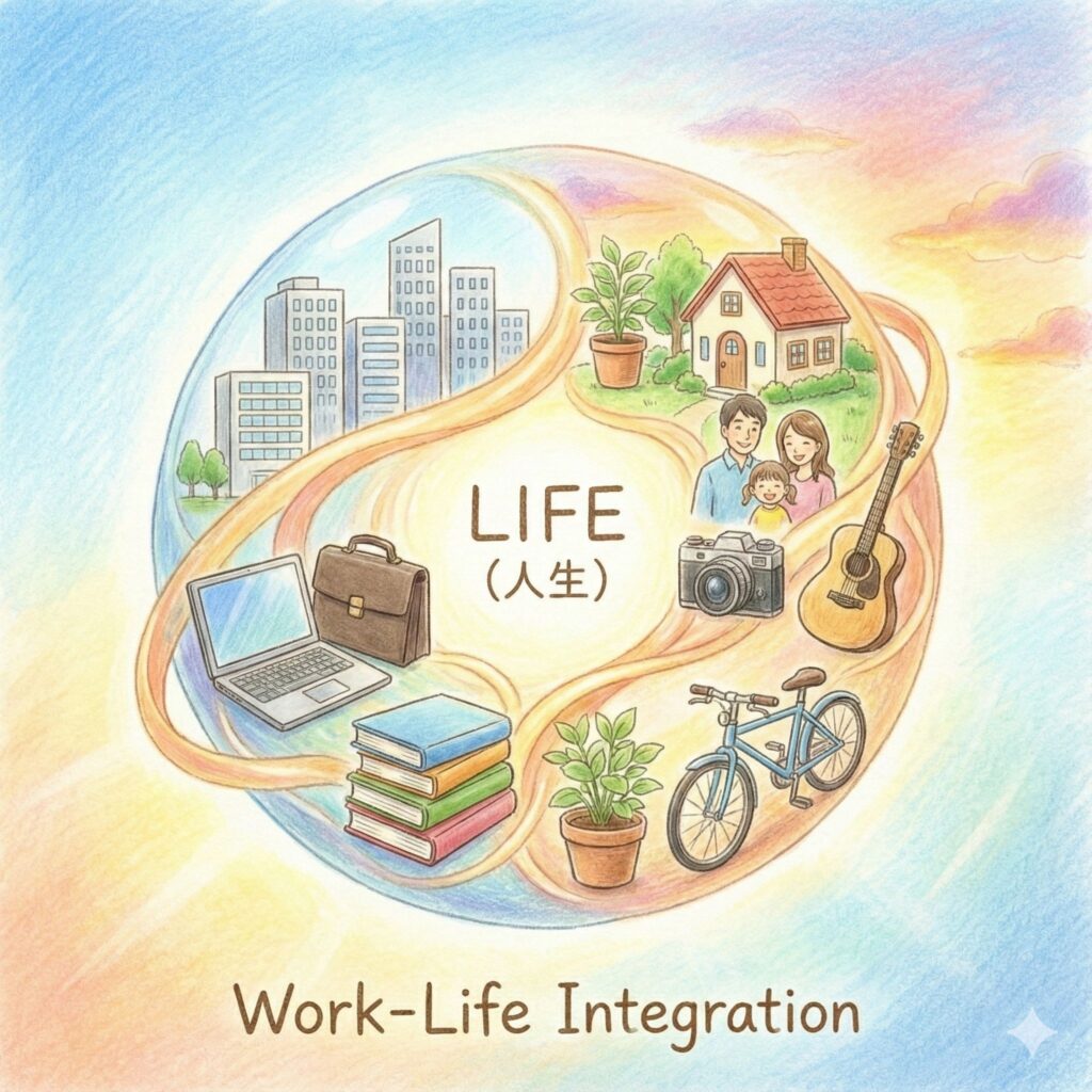 これは、「仕事」と「生活」を切り離して考えるのではなく、互いを人生の一部として自然に「融合」させていくという捉え方です。まるで、二つの川が合流して一つの大きな流れになるように、仕事での経験や学びを生活に活かし、生活で得た豊かさやエネルギーを仕事に還元していくイメージです。